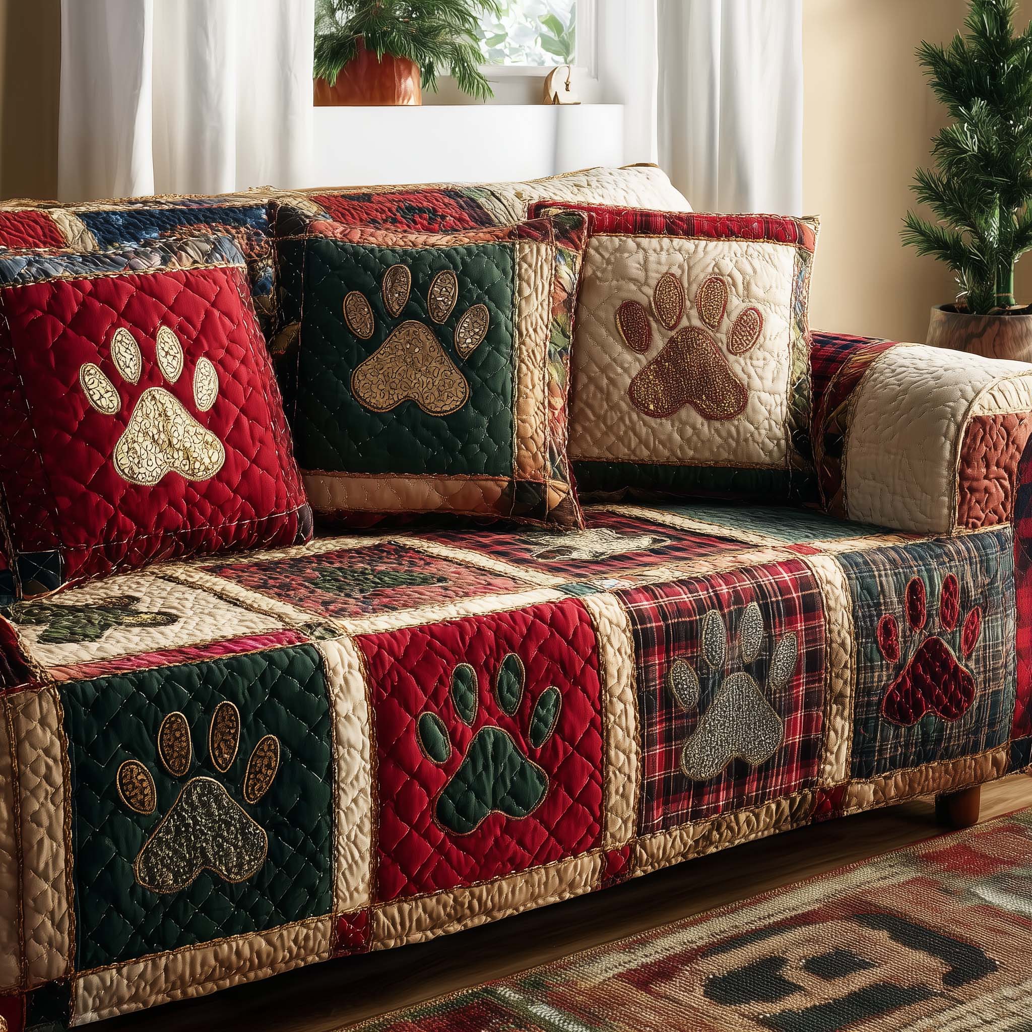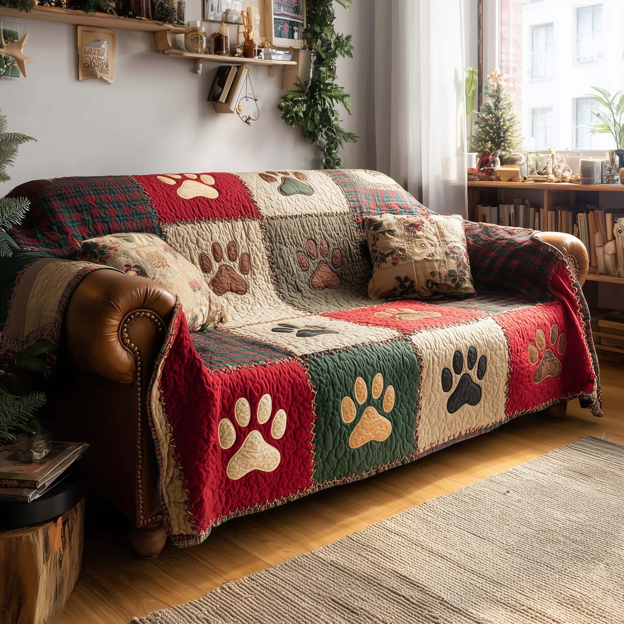 Lovely Paws Quilted Sofa Cover GFTOTL5294
